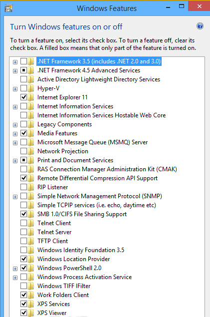 2. In the search results list, click Turn Windows Features On or Off. The Turn Windows Features On or Off window is displayed.