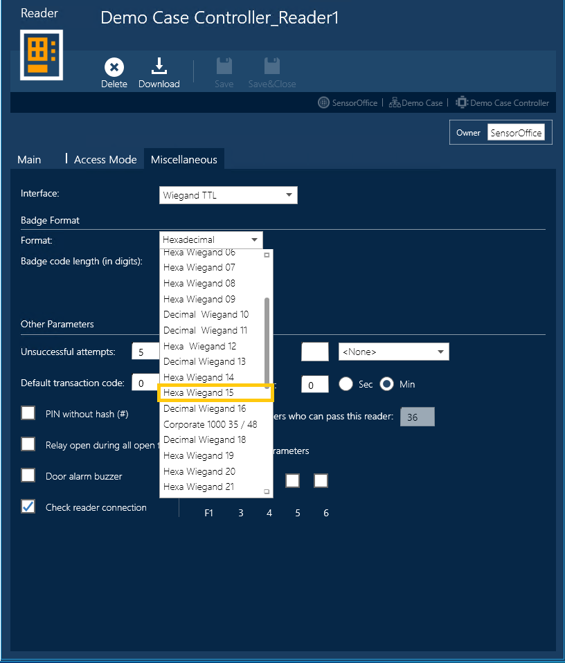 Go to the "Miscellaneous" tab and change the "Format" to "Hexa Wiegand 15".