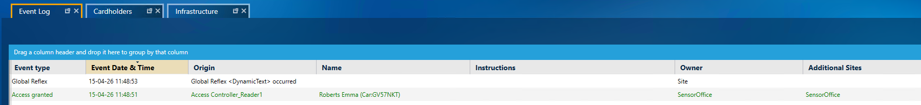 Once a number plate is scanned, the results will pull through to the Event Log within GP10: