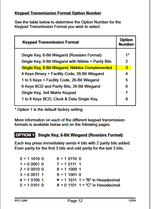 “Single Key, 8-Bit Wiegand, Nibbles Complemented”