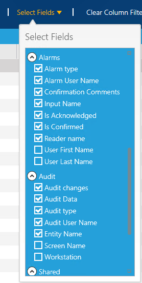 For demonstration purposes, selecting Access, Alarms, and Audit will display those event types in the report.