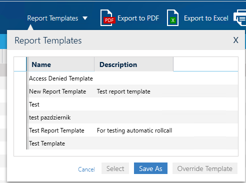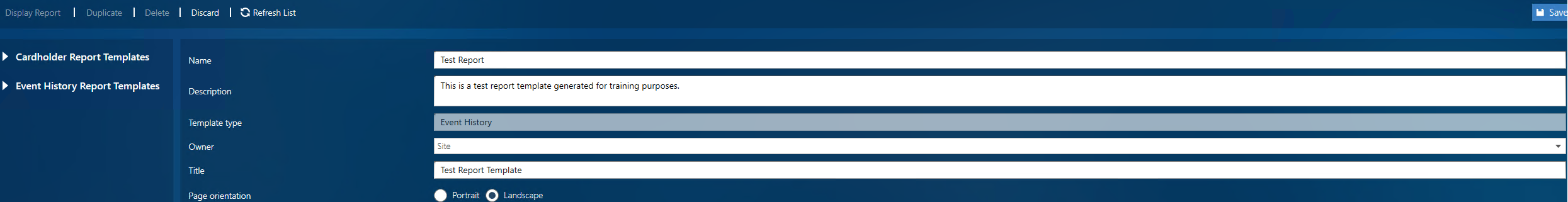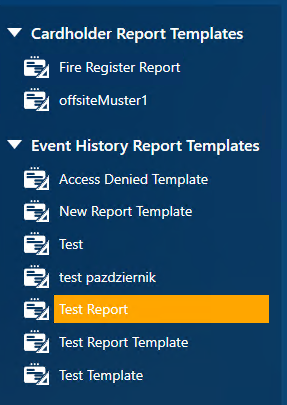 Templates are available from the Report Templates window for both Event History and Cardholder reports.